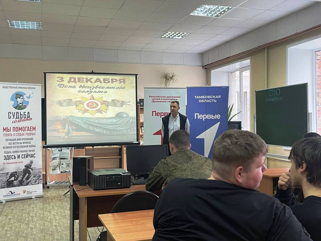 02 декабря 2025 года в читальном зале корпуса № 1 ТОГБПОУ «Многоотраслевой колледж» состоялось военно-патриотическое мероприятие посвященное Дню Неизвестного солдата (3 декабря).